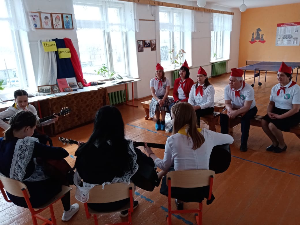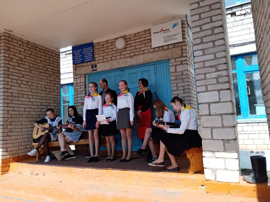 Представителей ЦДТ с. Верхние Татышлы группа "Кордон" встретили у порога школы с пионерской песней под гитару.