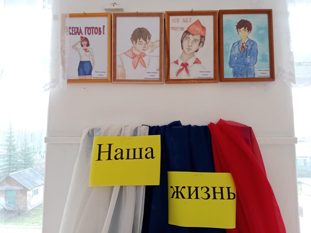 В фойе второго этажа школы была оформлена выставка альбомов, рисунков и фотографии о богатой многолетней пионерской жизни нашей школы.