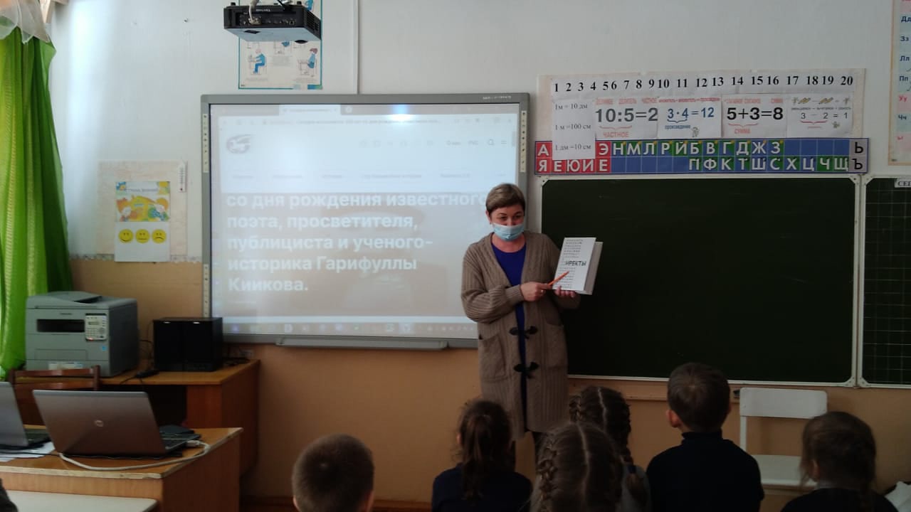 5 апреля 2021 г. в 1 классе была организована беседа о знаменитом земляке Гарифулле Киикове.