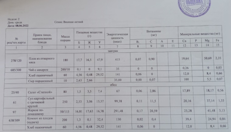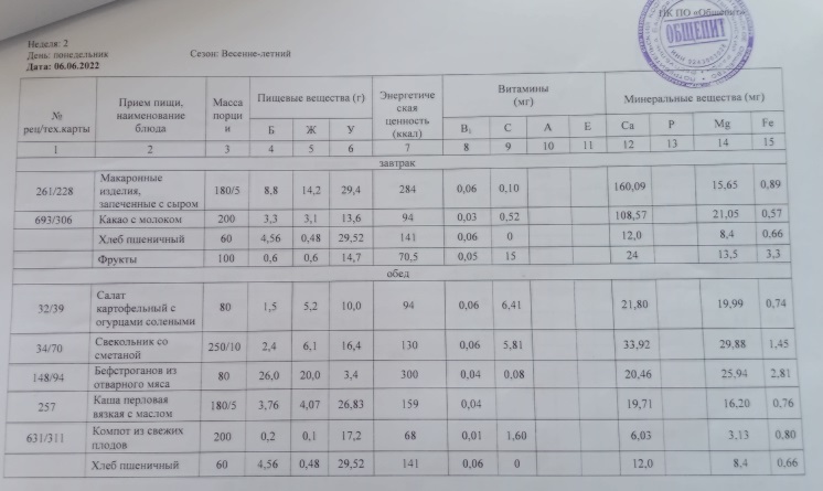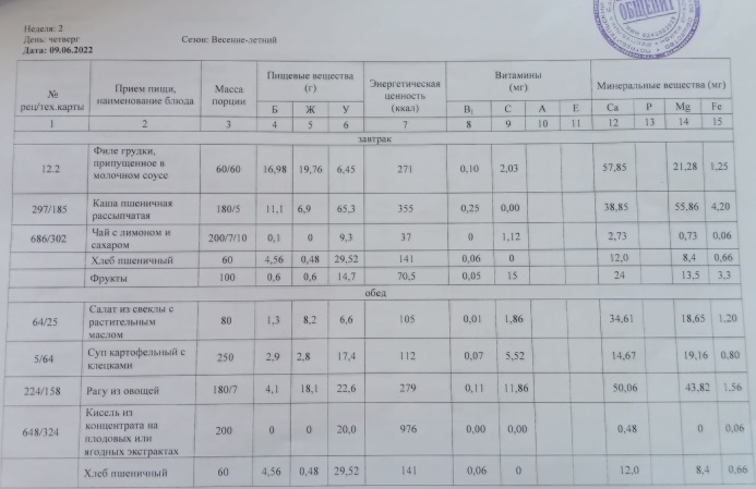Меню на 26.09.2022г для учащихся 5-9 классы ОВЗ