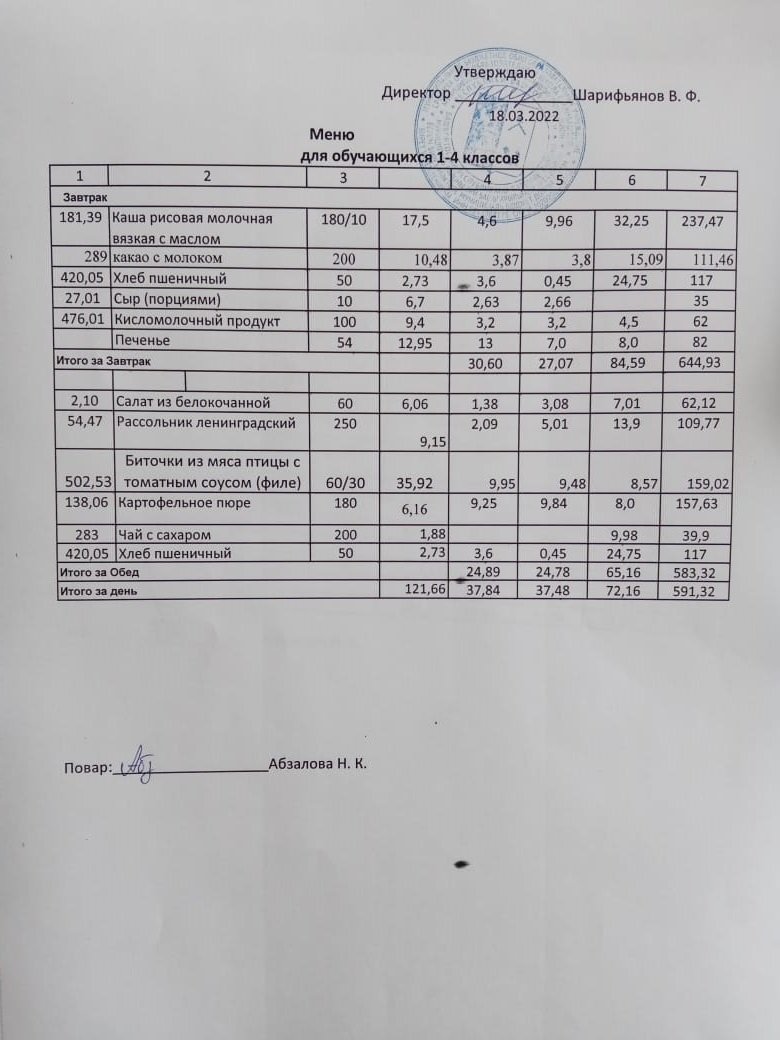 Меню на 18.03. для учащихся 1-4 кл с ОВЗ