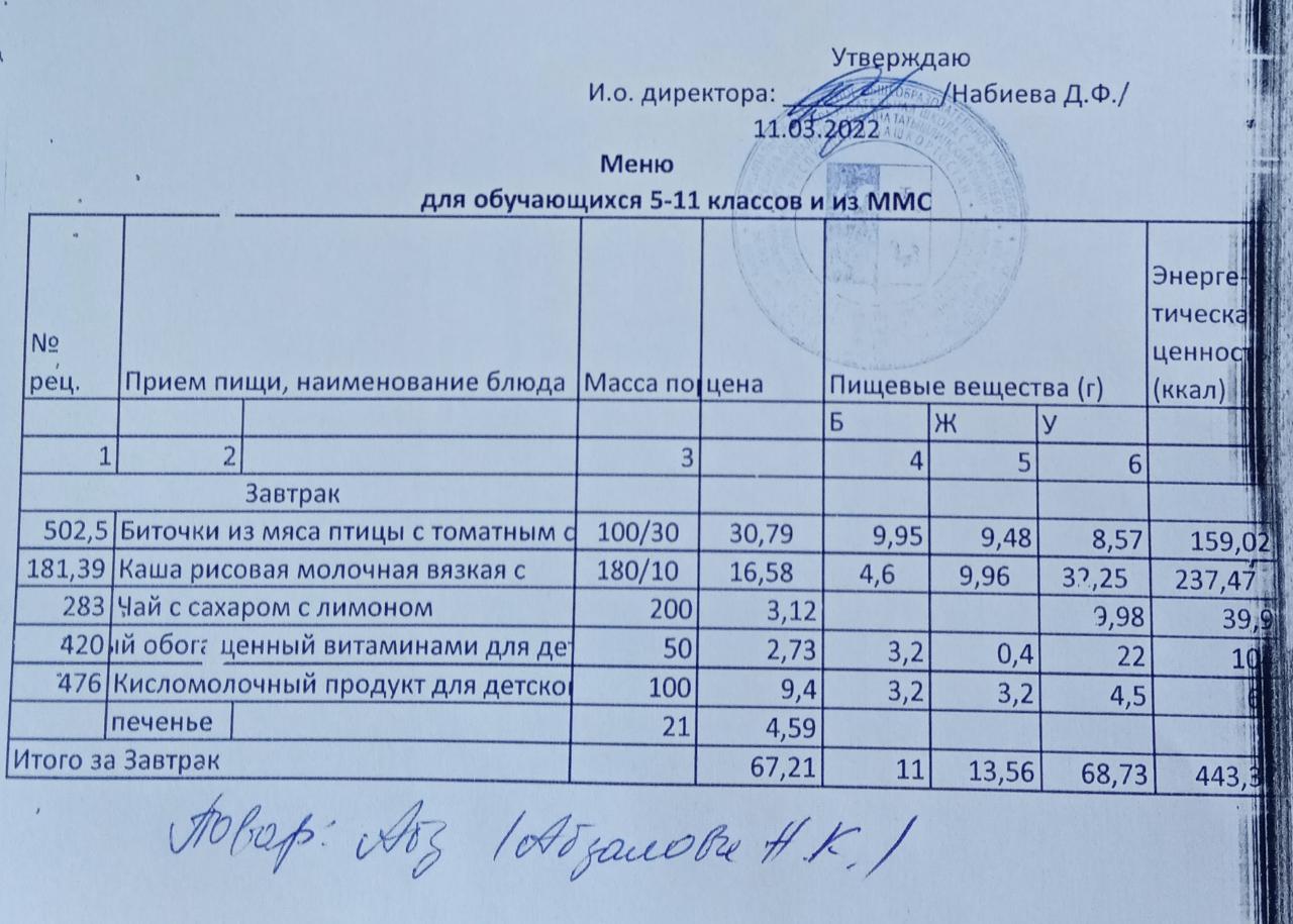 Меню на 11.03. для учащихся 5-11 кл и из ММС