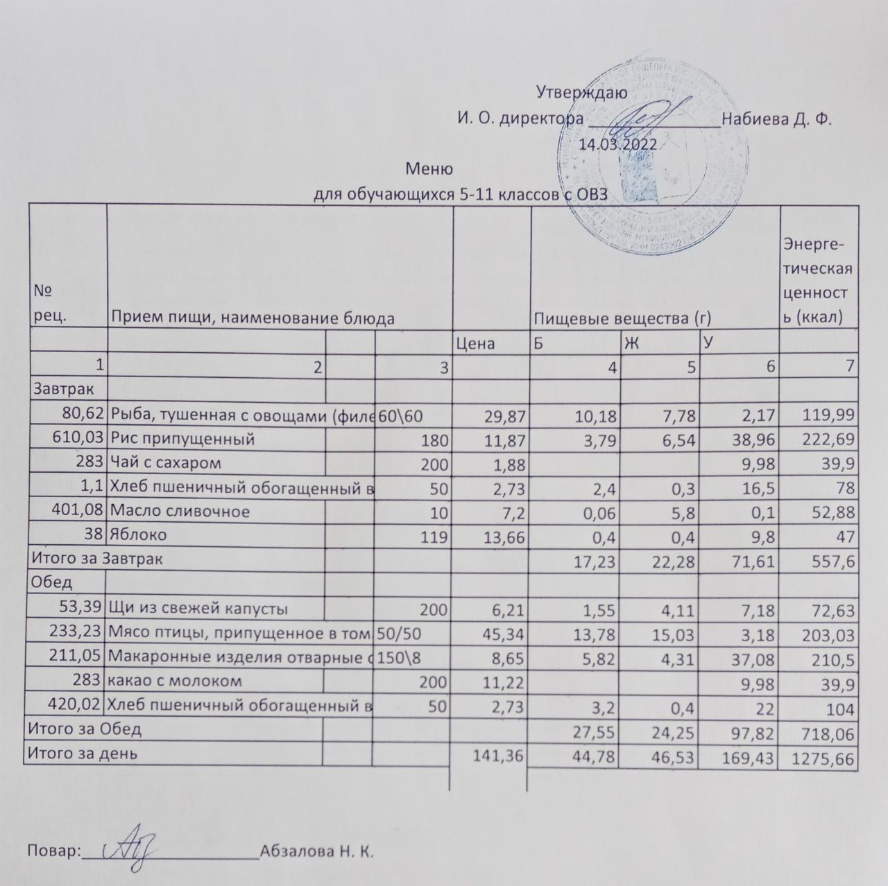 Меню на 14.03. для учащихся 5-11 кл с ОВЗ