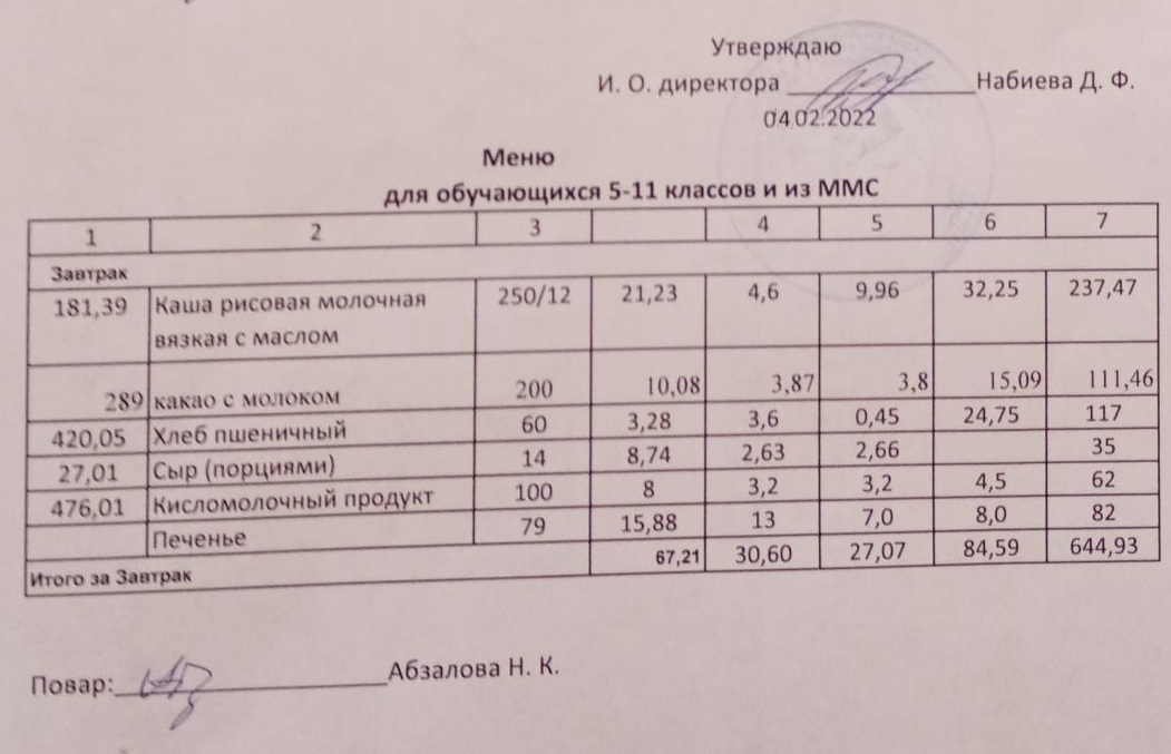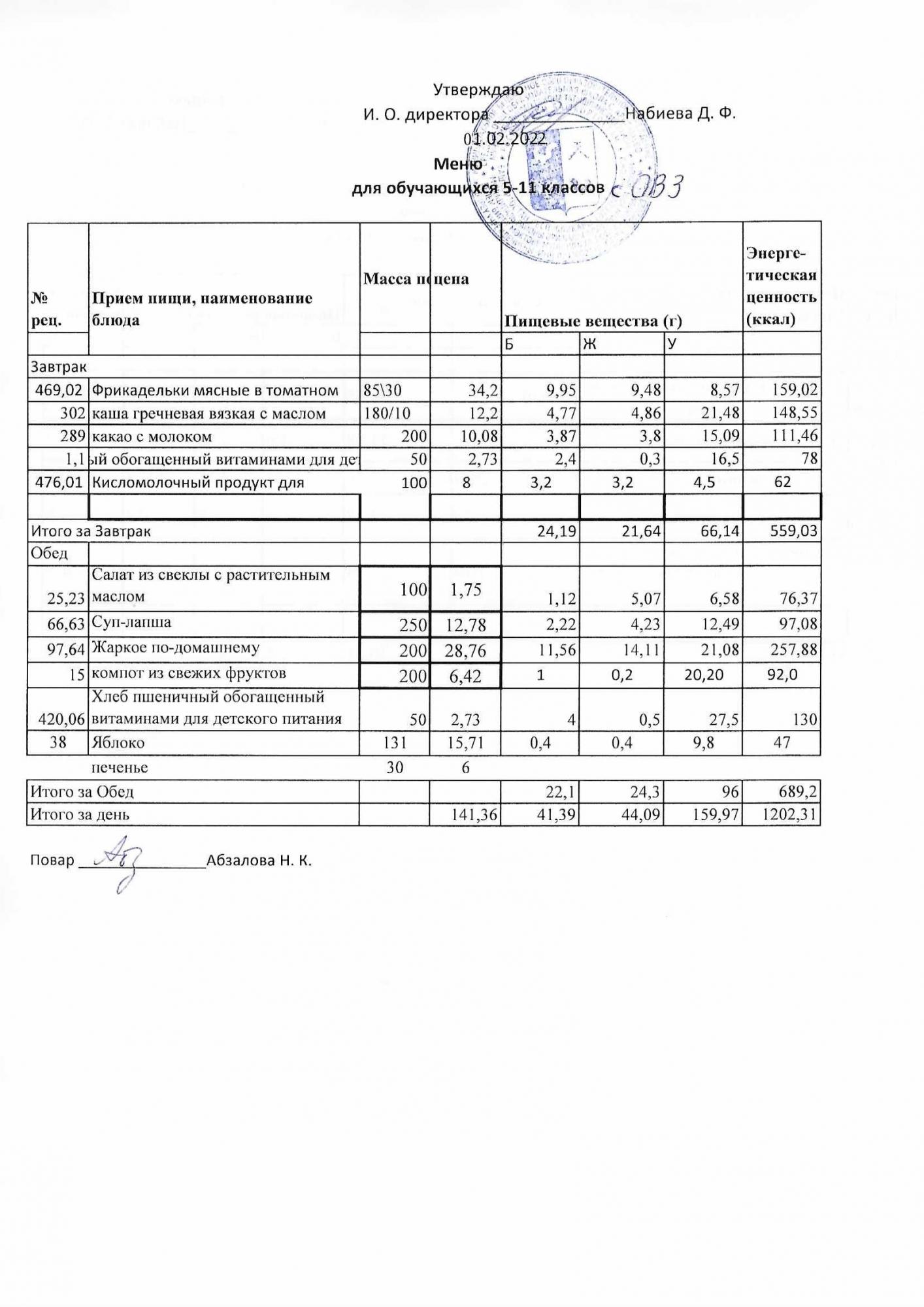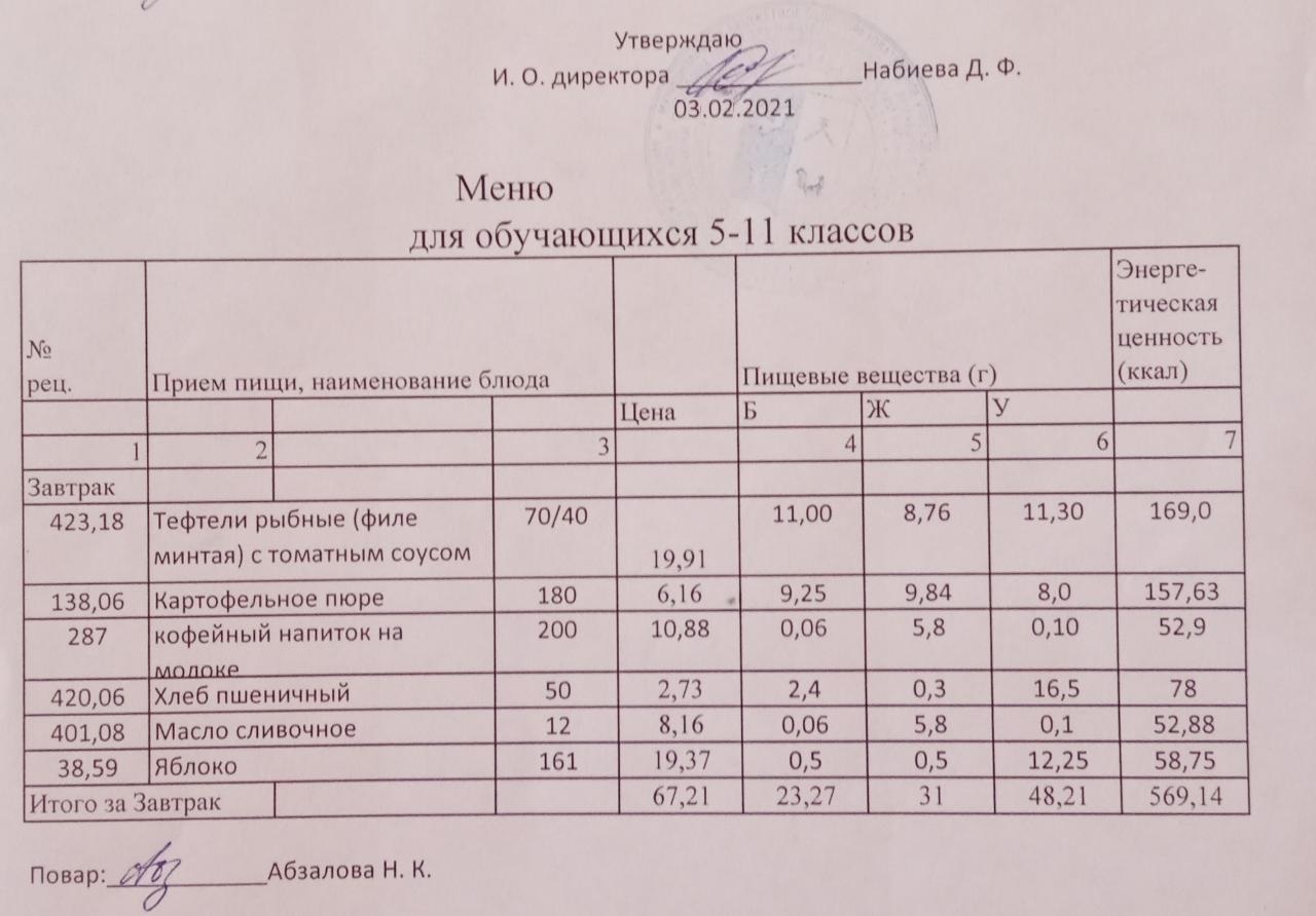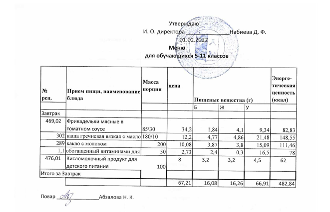 Меню на 01.02. для учащихся из ММС