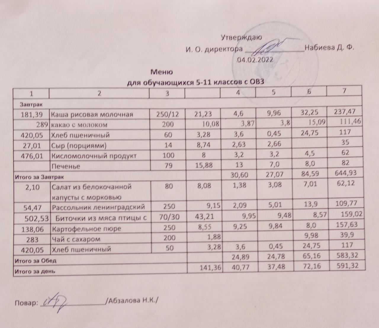 Меню на 04.02. для учащихся 5-11 кл с ОВЗ