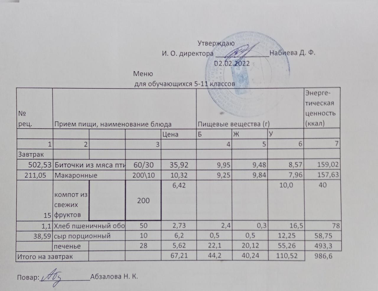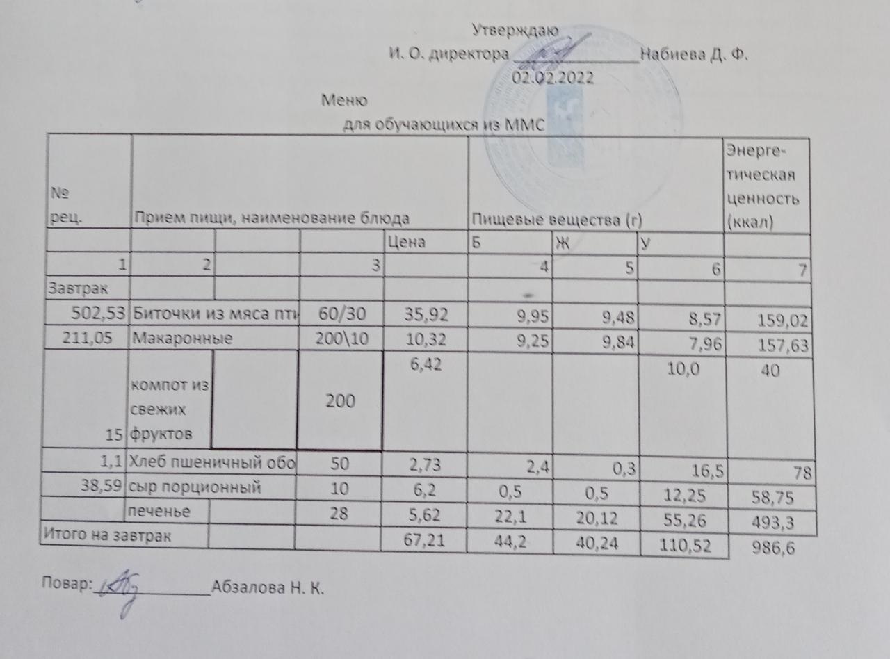Меню на 02.02. для учащихся из ММС