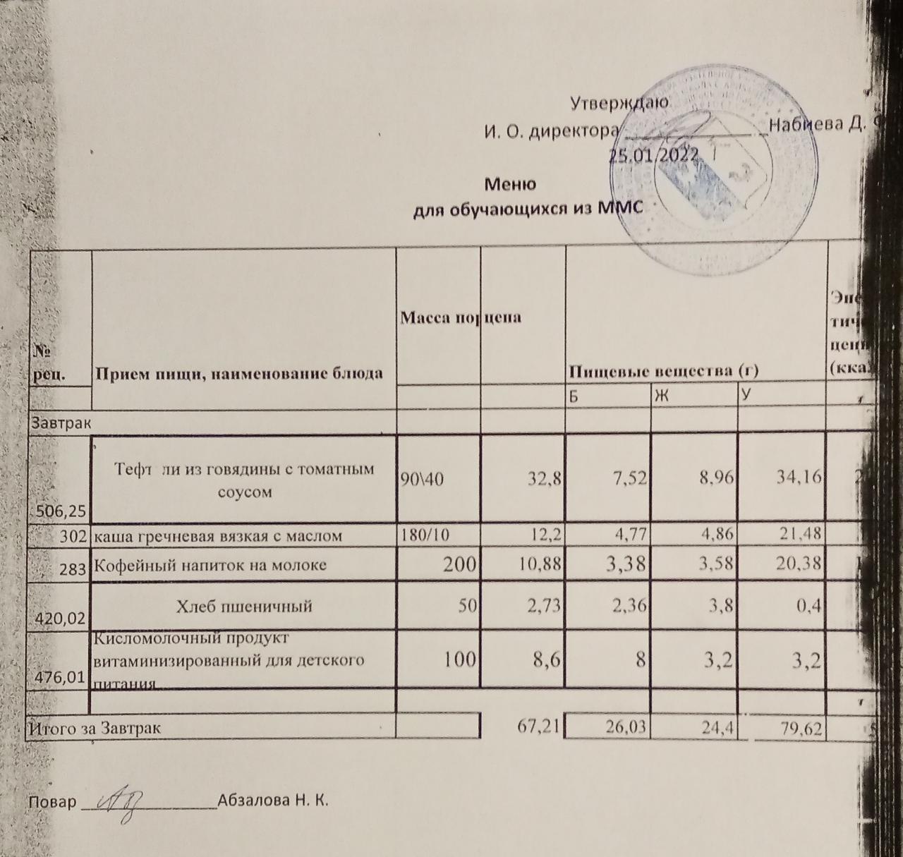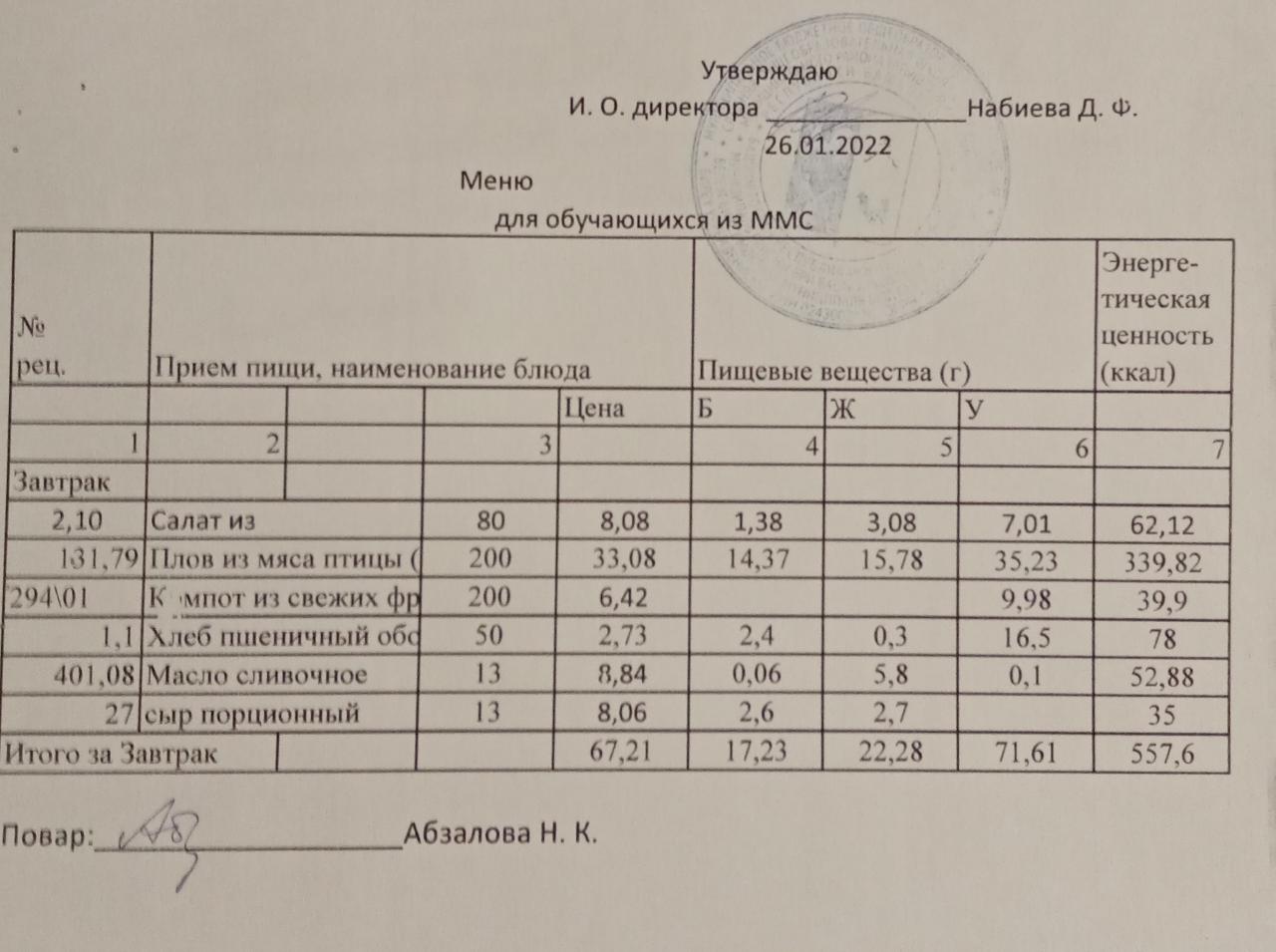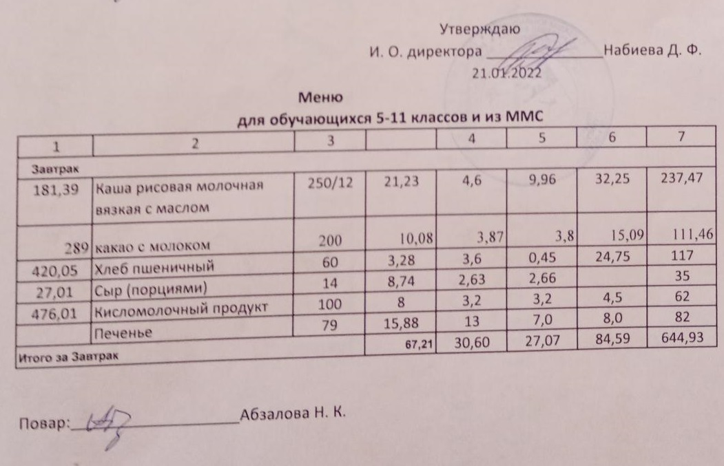 Меню на 21.01. для учащихся 5-11 кл и из ММС