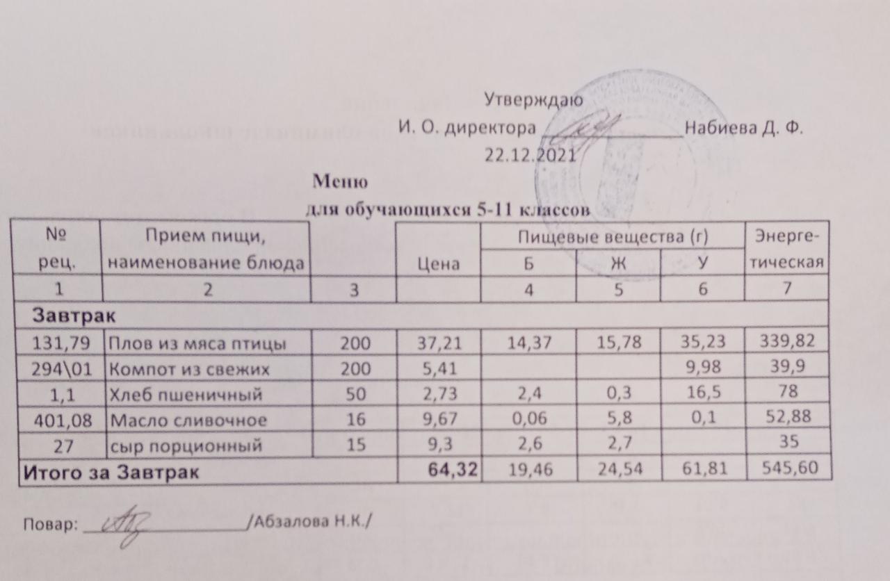 Меню на 22.12. для учащихся 5-11 кл