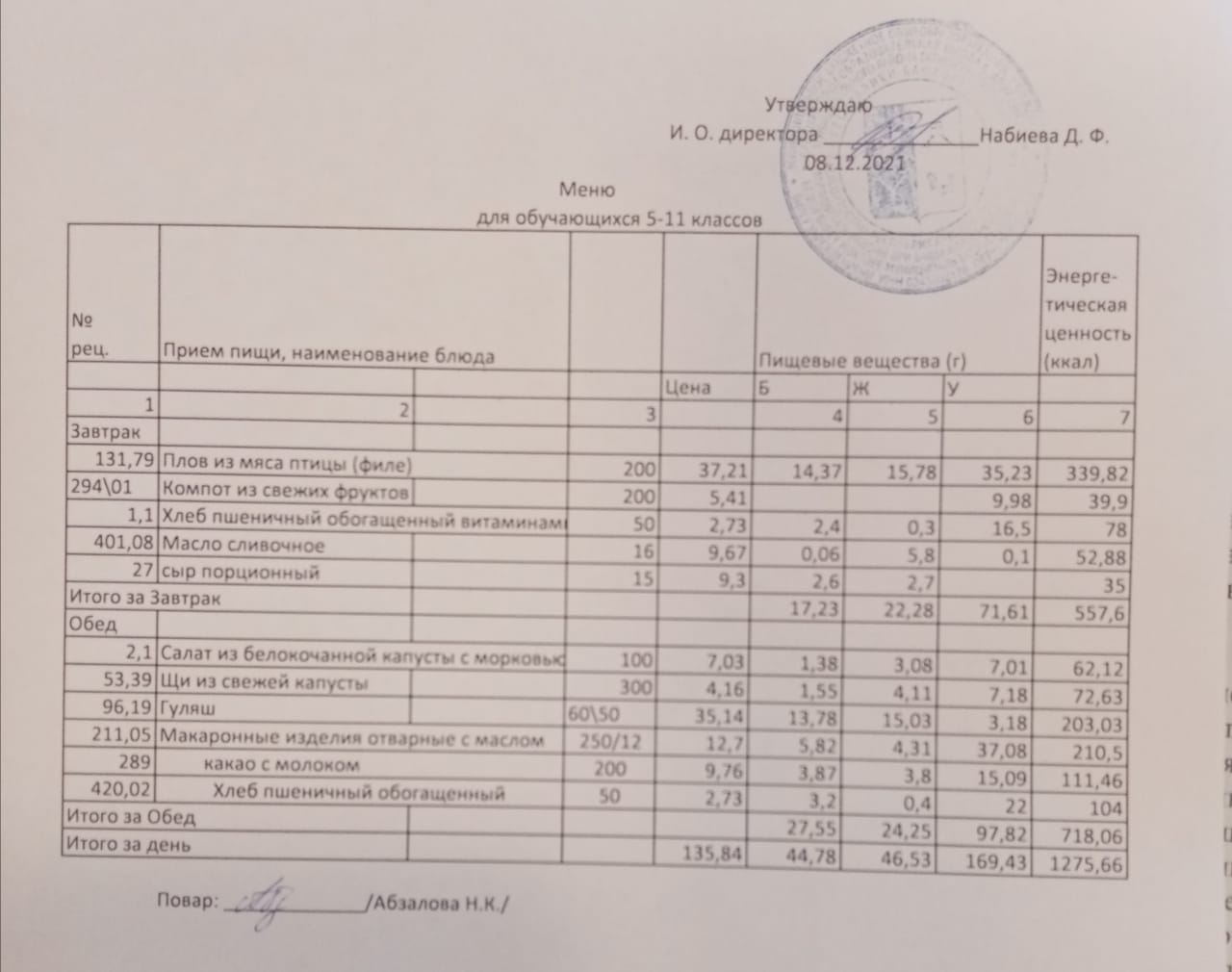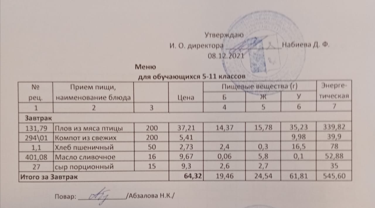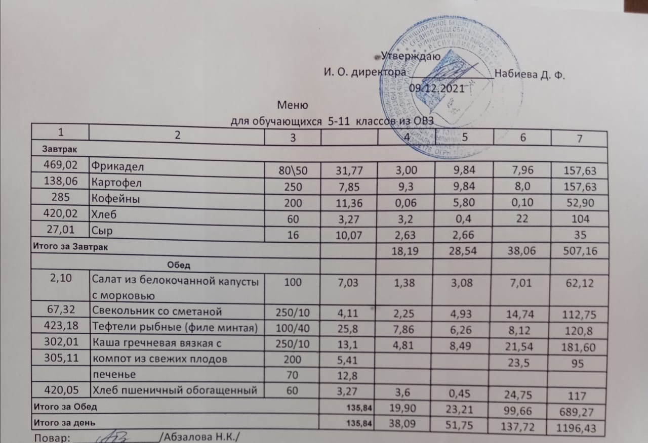 Меню на 07.12. для учащихся из ММС