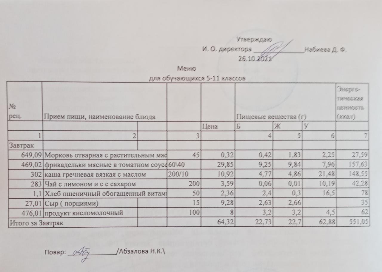 Меню на 26.10. для обучающихся 5-11 кл