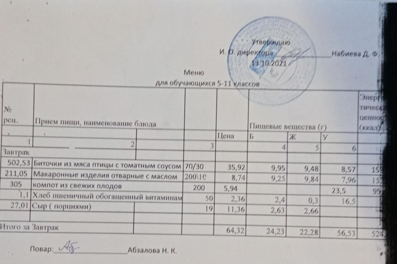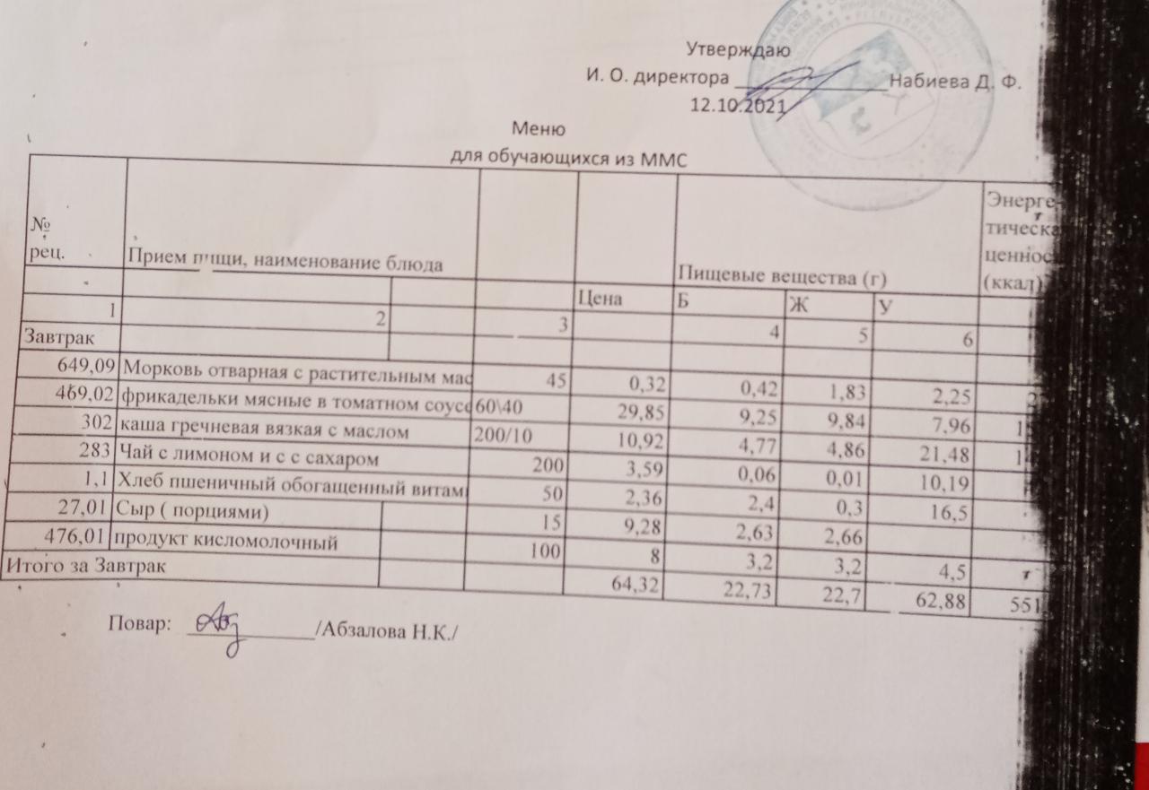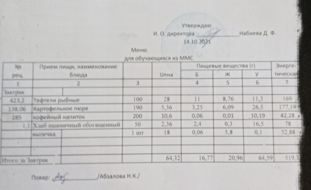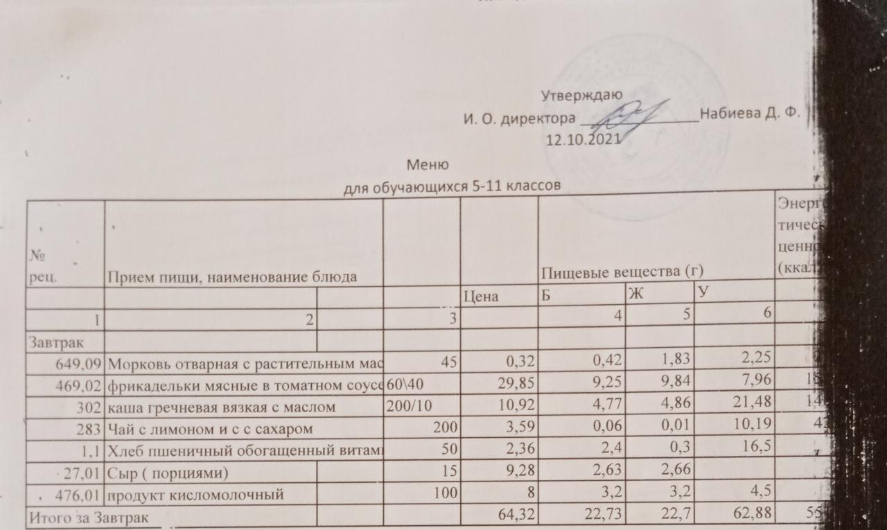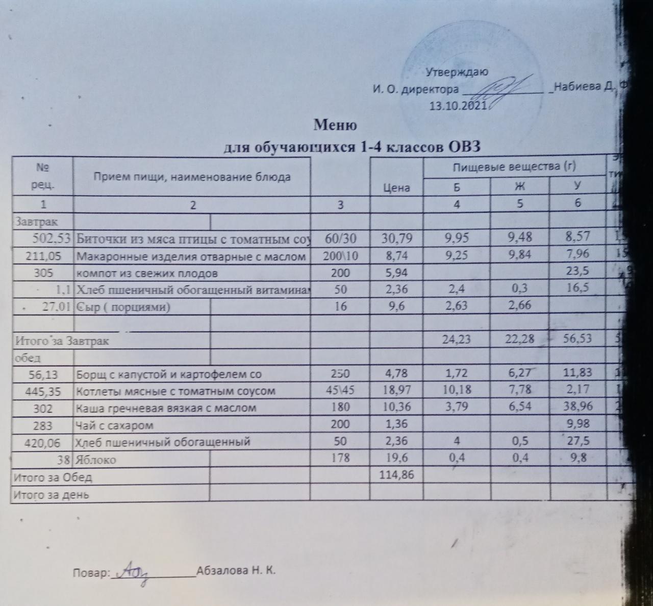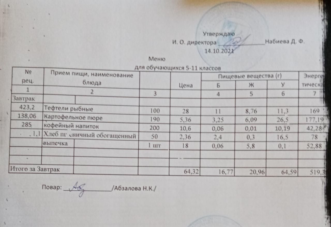 Меню на 14.10. для учащихся 5-11 в ОВЗ