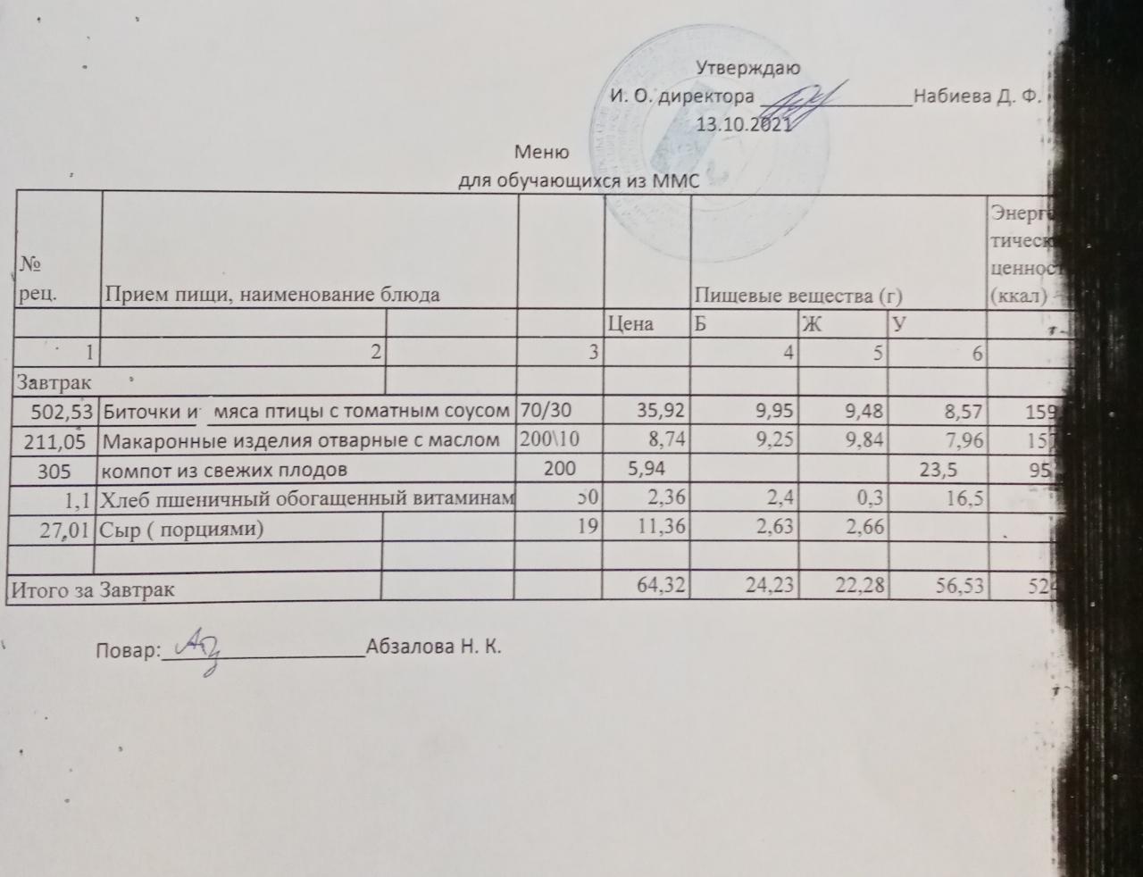 Меню на 13.10. для учащихся 5-11 кл с ОВЗ
