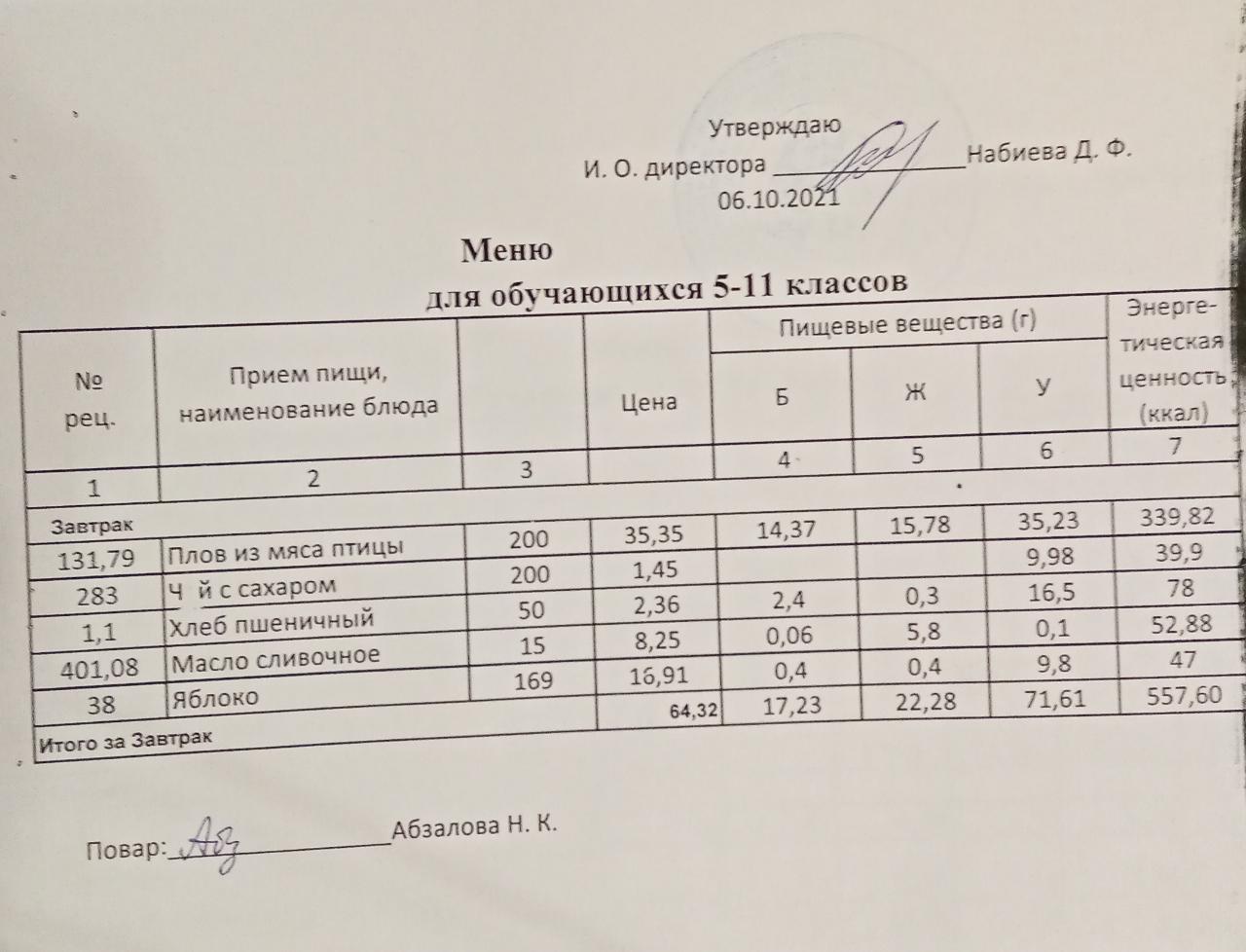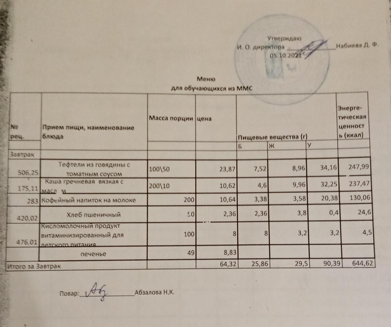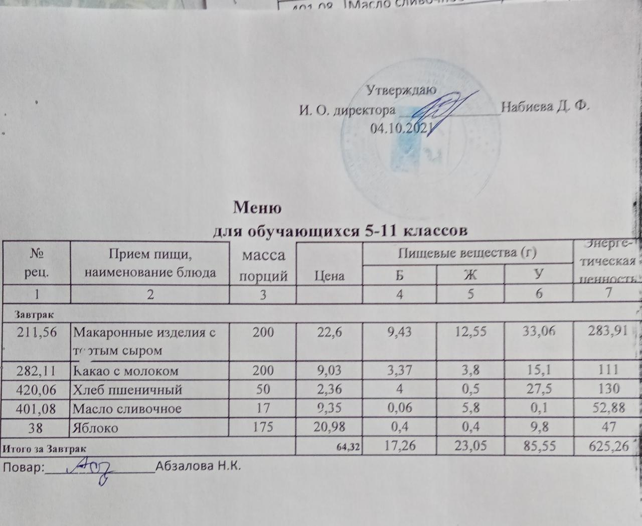 Меню на 04.10. для учащихся 5-11 классов и из ММС