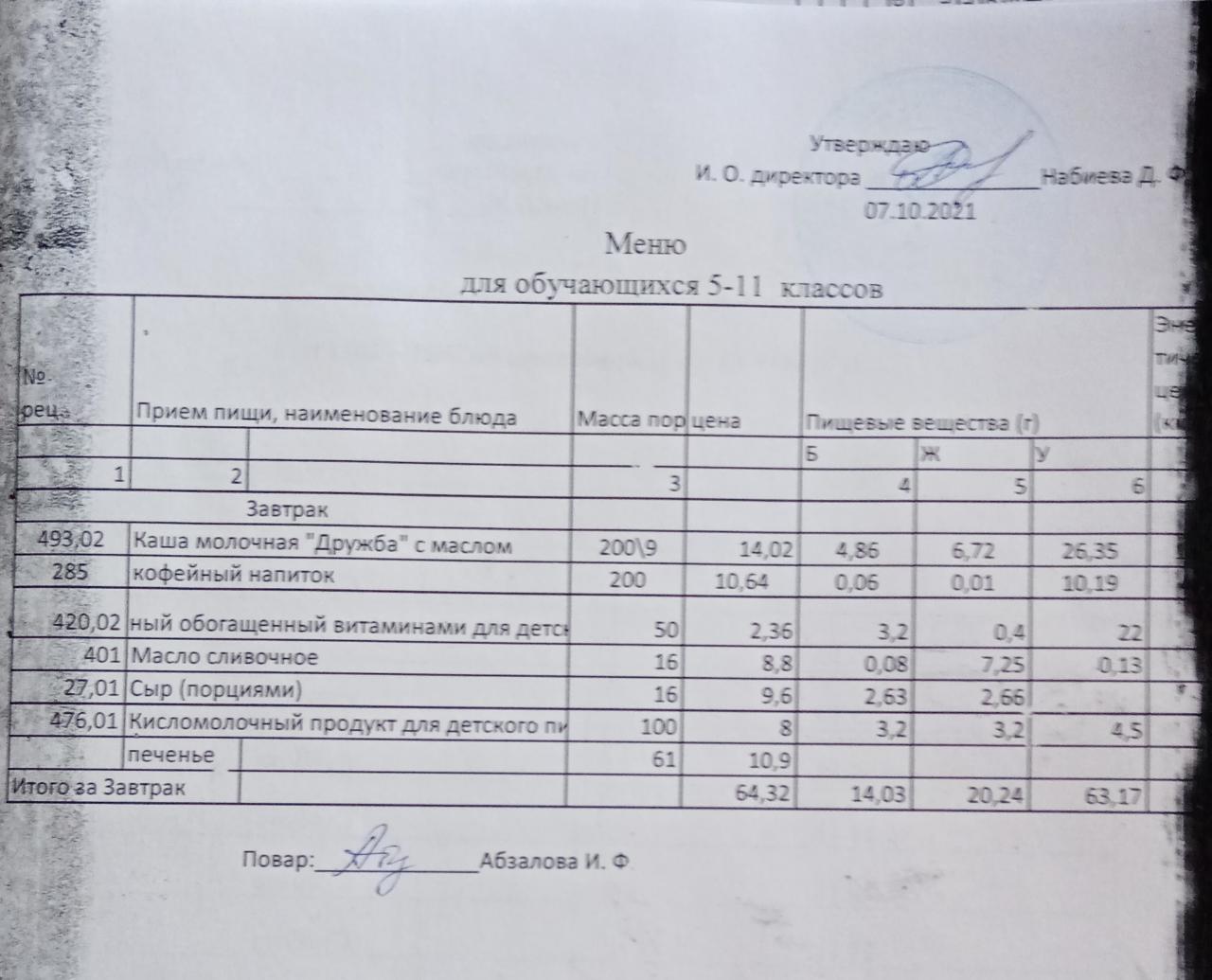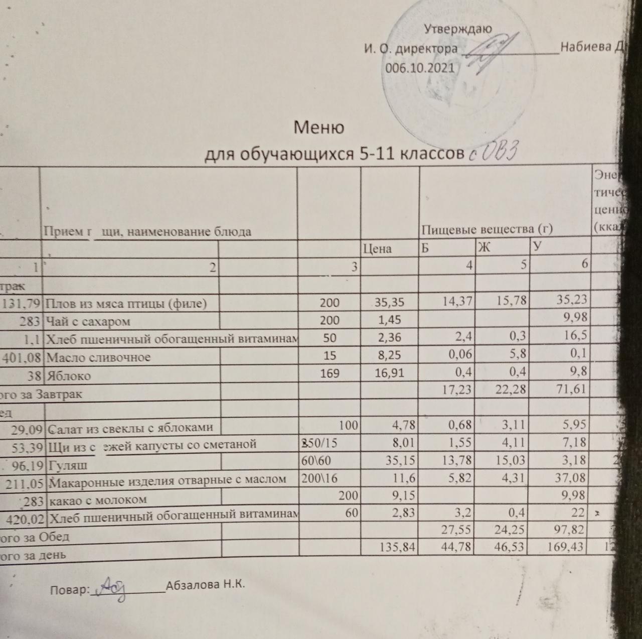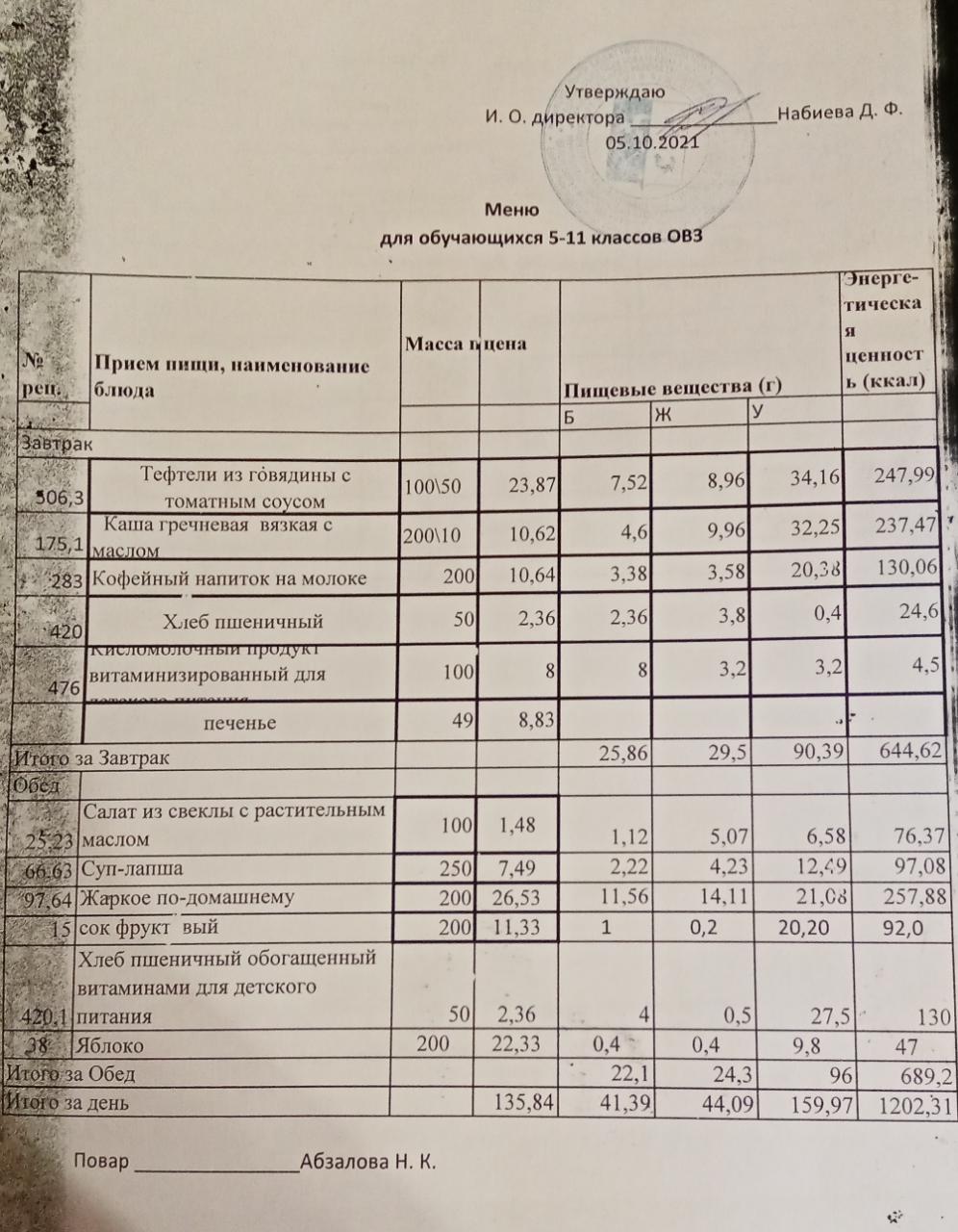 Меню на 05.10. для учащхся 5 - 11 кл с ОВЗ