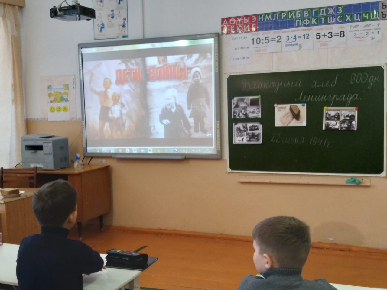 В 3 классе был учителем Гараевой К.А. проведён урок памяти «Хлеб блокадного Ленинграда». Из презентации ребята узнали, что блокада Ленинграда длилась 872 дня. Ленинград терял своих жителей с колоссальной скоростью. Единственной надеждой на завтрашний день был паек. Буханка хлеба постепенно превратилась в 125-ти граммовый кусочек – именно такая минимальная норма выдачи хлеба была установлена для жителей блокадного Ленинграда. Ребята узнали, что входит в состав хлеба, рецептура менялась практически ежедневно. Всё зависело от того сырья, что имелось в наличии на заводах. Вместо ржаной обойной муки в хлеб клали овсяную, ячменную, кукурузную и соевую муку, мучную пыль, лузгу, рисовую мучку, отруби. Иногда эти ингредиенты могли применяться одновременно – по пять-шесть добавок. Урок памяти «Хлеб блокадного Ленинграда» в очередной раз убедили ребят, что они обязаны помнить, какой ценой завоеван мир, и сделать всё возможное для его сохранения. Пусть эта дата напоминает всему миру о том подвиге, который совершили жители блокадного Ленинграда. Долг каждого человека - помнить, чтить и передавать своим будущим потомкам память той Великой Победы.