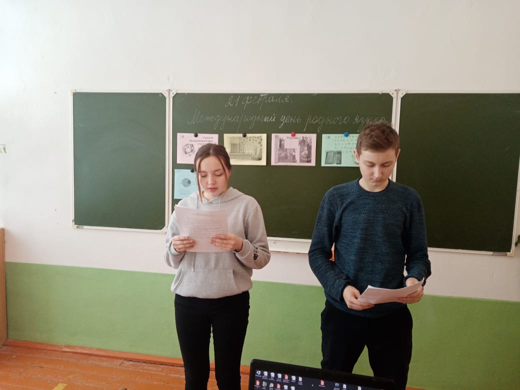 Накануне Дня родного языка, 21 февраля 2022 г., учителя родного языка Шамсиярова Л.Р. и русского языка и литературы Зидымышева Л.А. в 6, 9 классах провели классные часы "Слова паразиты", "Нам без родного языка не прожить ни дня".