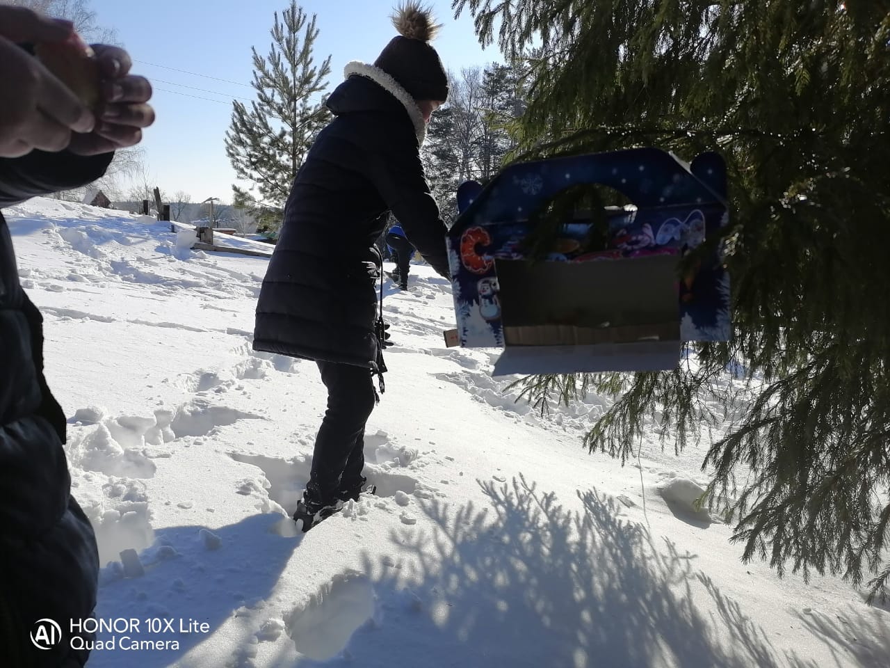 И вот на уроке технологии учащиеся 5 класса в очередной раз под руководством учителя Афризонова А.В. изготовили кормушки и развесили на деревьях около школы. В течение четырех месяцев (декабрь-март) ежедневно ребята приносят пакетики с кормом и подсыпают зерно в кормушки. С интересом наблюдают за птицами, посещающими наши кормушки: это - воробьи, синицы, дятел и другие. Настроение ребят улучшается, когда они осознают, что делают хорошее дело.