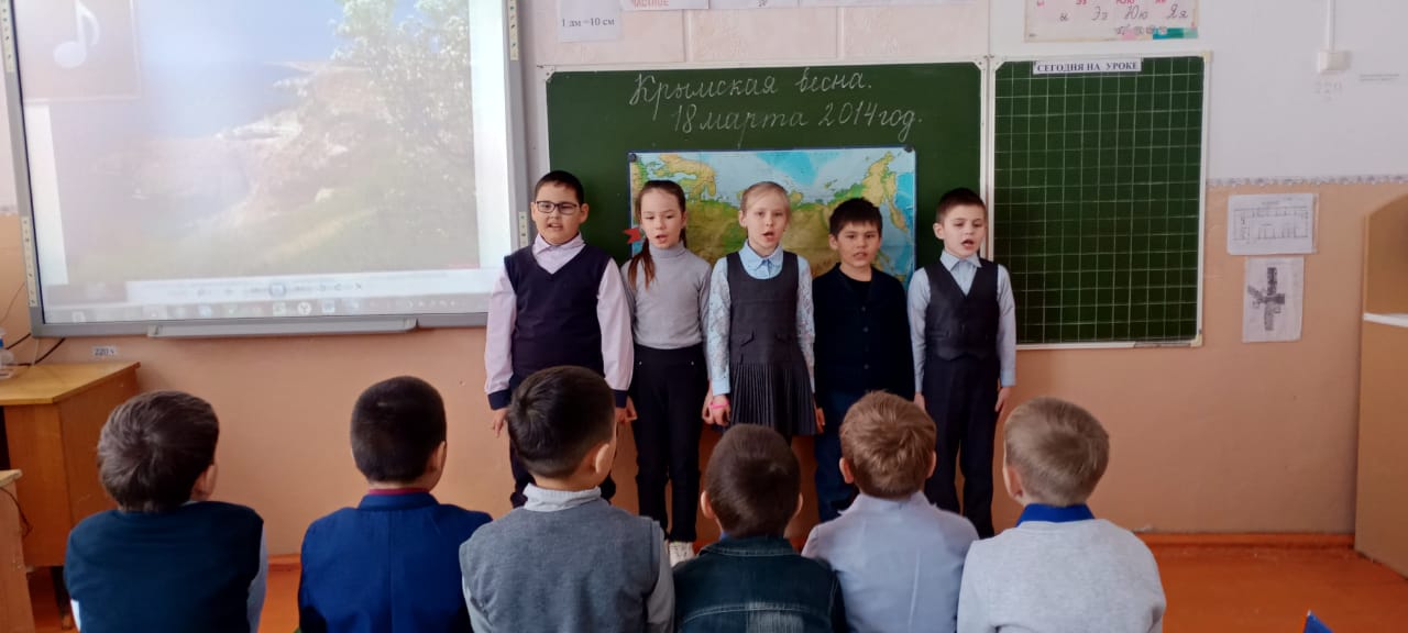 С целью формирования у детей патриотических чувств, уважения к истории своей страны, развития интереса к историческим событиям, произошедшим в Крыму 18 марта 2022 года в начальных классах прошел открытый урок "Крымская весна", посвященные Дню воссоединения Крыма с Россией.