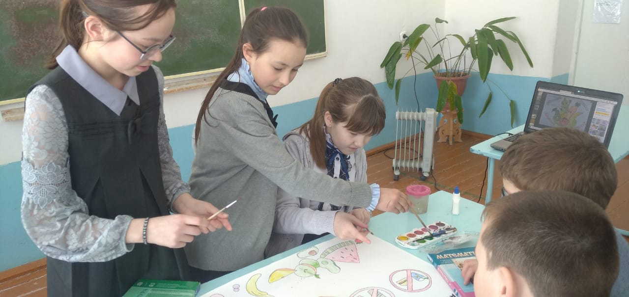 С пятиклассниками было проведено анкетирование, которое позволило выяснить насколько дети сознательно относятся к своему здоровью. Ангелина Ульмасовна познакомила детей с пирамидой здорового питания, рассказала о пищевых добавках. После беседы учащиеся выпустили стенгазету о правильном сбалансированном питании с рекомендациями правильного питания для школьников. Стенгазета была вывешена в школьной столовой.