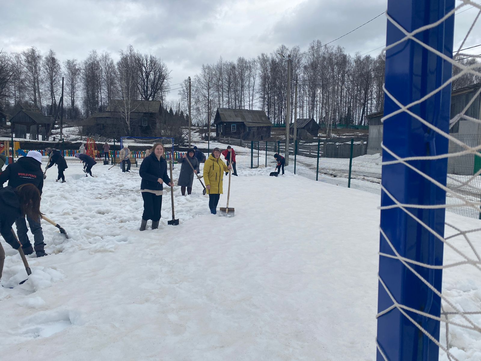 15 апреля, в День экологических знаний, учащиеся старших классов и учителя присоединились к республиканской акции "Снежная суббота". Была проведена большая работа по уборке снега и наледи.