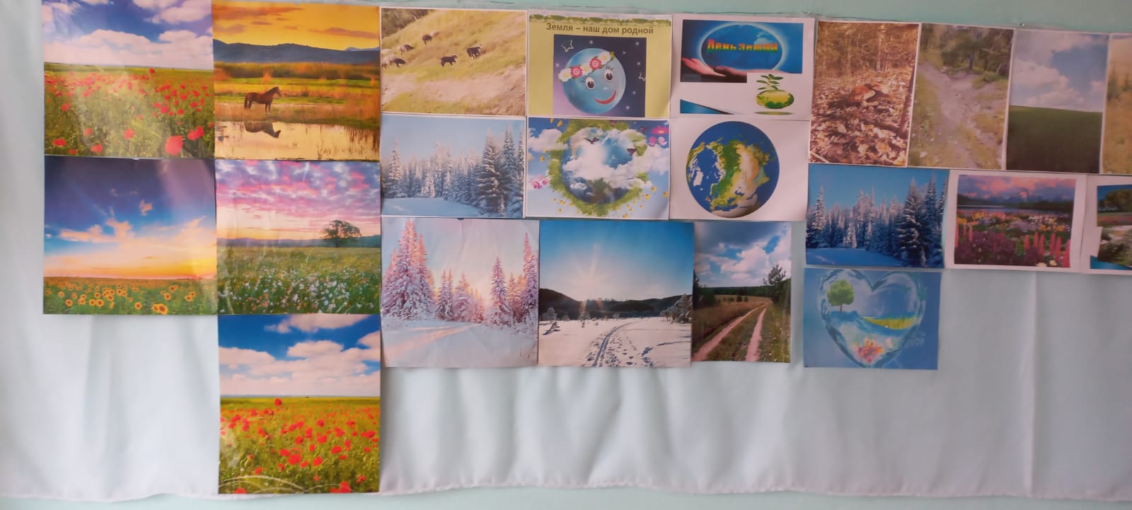 22 апреля 2022 г в фойе первого этажа школы учащимися 2-4 классов под руководством школьного библиотекаря Зидымышевой В.С. был оформлен фотоколлаж "День Земли".