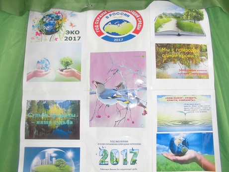 С 13 по 15.04. 2017 г в коридоре второго этажа была устроена выставка плакатов и стенгазет, призывающих беречь природу родного края. Выставка посвящена Году экологии.