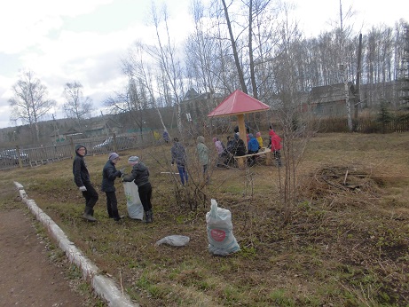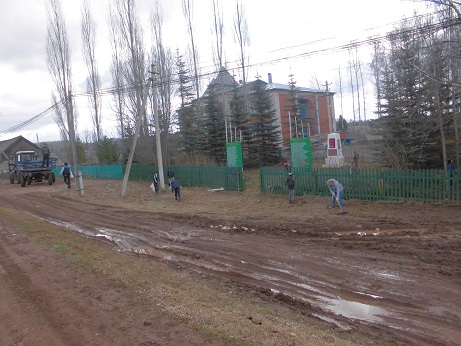 Была проделана большая работа: убрана территория школьного двора, пришкольного опытного участка, цветник, спортивная площадка, вся территория вокруг школы, вокруг обелиска от бытового мусора, сухой травы, поросли.