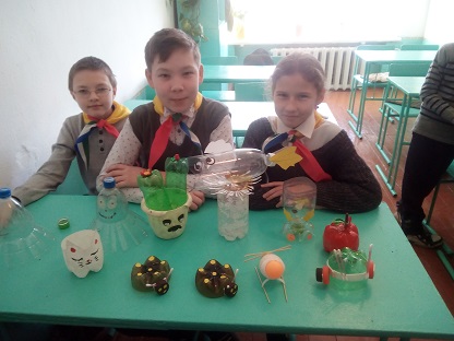 В начале ноября в школе прошла акция «Пластик». Пионеры нашей школы проявили свое творчество. Девиз работы: не загрязнять природу, украшать жизнь своими руками.
