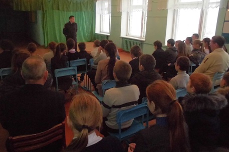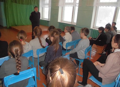 С учениками 5 — 10 классов инспектор провел беседу-инструктаж с напоминания о правилах дорожного движения. Далее инспектор напомнил ребятам о том, как не стать жертвой преступления. Были подняты вопросы безопасности жизни и здоровья ребят, а также ответственности учеников за сохранность личных вещей (сотовые телефоны, деньги), которыми они пользуются самостоятельно.