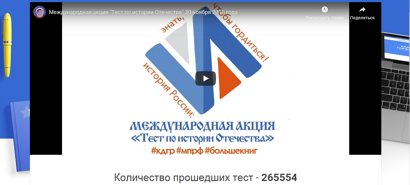 30.11.2018 г. учащиеся старших классов и учителя приняли участие в Международной акции «Тест по истории Отечества».