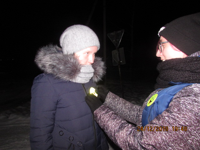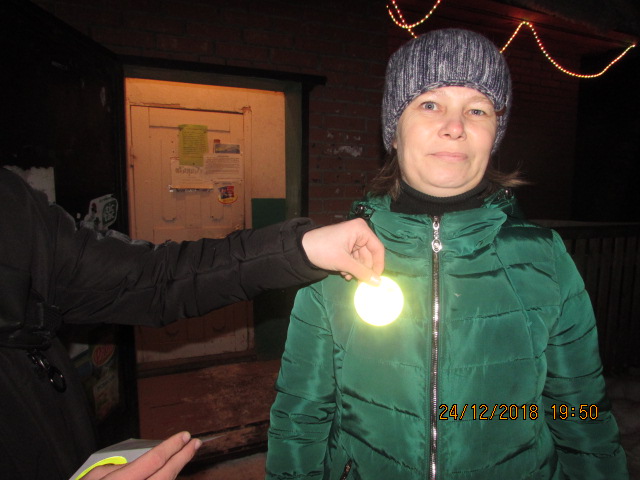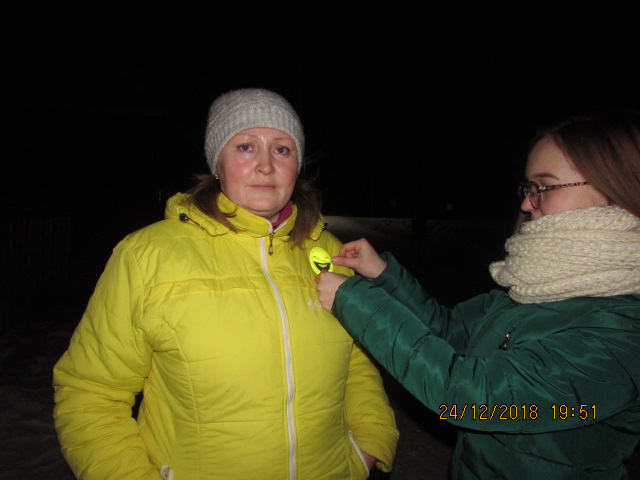 Вечером организаторы акции "Засветись" вышли на центральную улицу, останавливая пешеходов, говорили о необходимости использования светоотражателей и дарили их прохожим с пожеланиями удач на дороге.