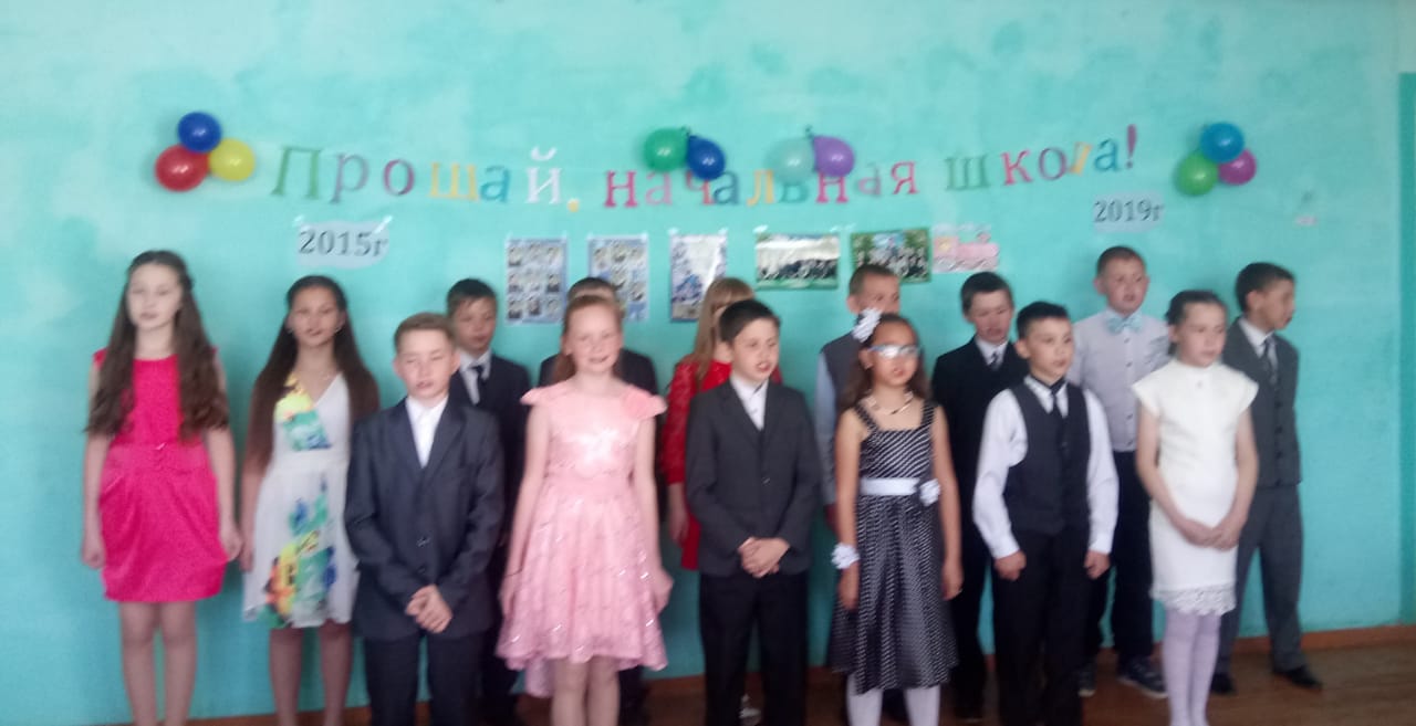 29.05.2019 г. для 15 выпускников начальной школы прозвучал последний звонок. К главным героями этого праздника с поздравительной речью обратились их классный руководитель Гараева К.А. и родители.