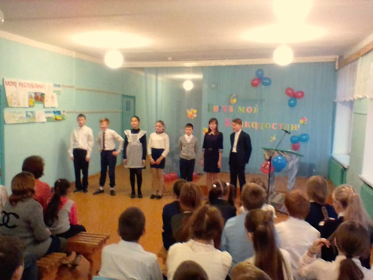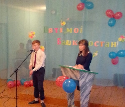 В торжественной части после открытия мероприятия учащимися Туктамышевой Р и Давлетьянова Г. прозвучал гимн РБ, выступили с литературной композицией учащиеся 7 класса.