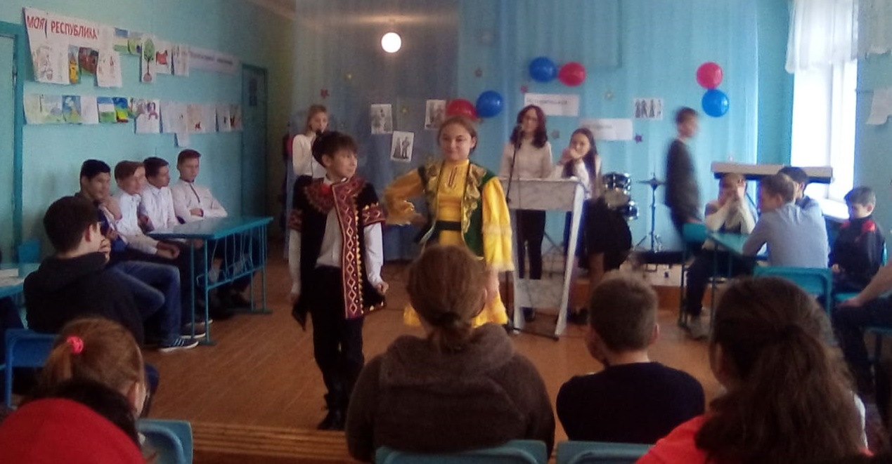 В перерывах между заданиями прозвучали песни группы «Кордон», сольные песни в исполнении Сагитовой А., Гафурьяновой А., мелодии курая, сценки в исполнении учащихся 5 класса.