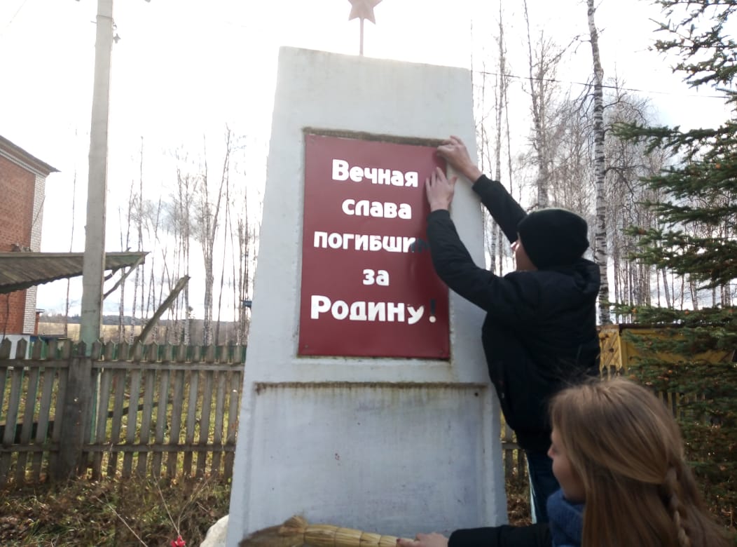 24 октября 2019 г. старшие учащиеся нашей школы убирались в парке Победы, на территории, прилегающей к обелиску погибшим воинам-землякам в годы ВОВ. Старшеклассники заботятся об обелиске, находящемся на территории в центре нашего села: очищают территорию от мусора.