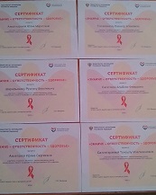 В завершении участники получили сертификаты «Знание – ответственность – здоровье» Министерства просвещения РФ об участии в социально значимом самоисследовании уровня компетенции в области профилактики распространения ВИЧ – инфекции.