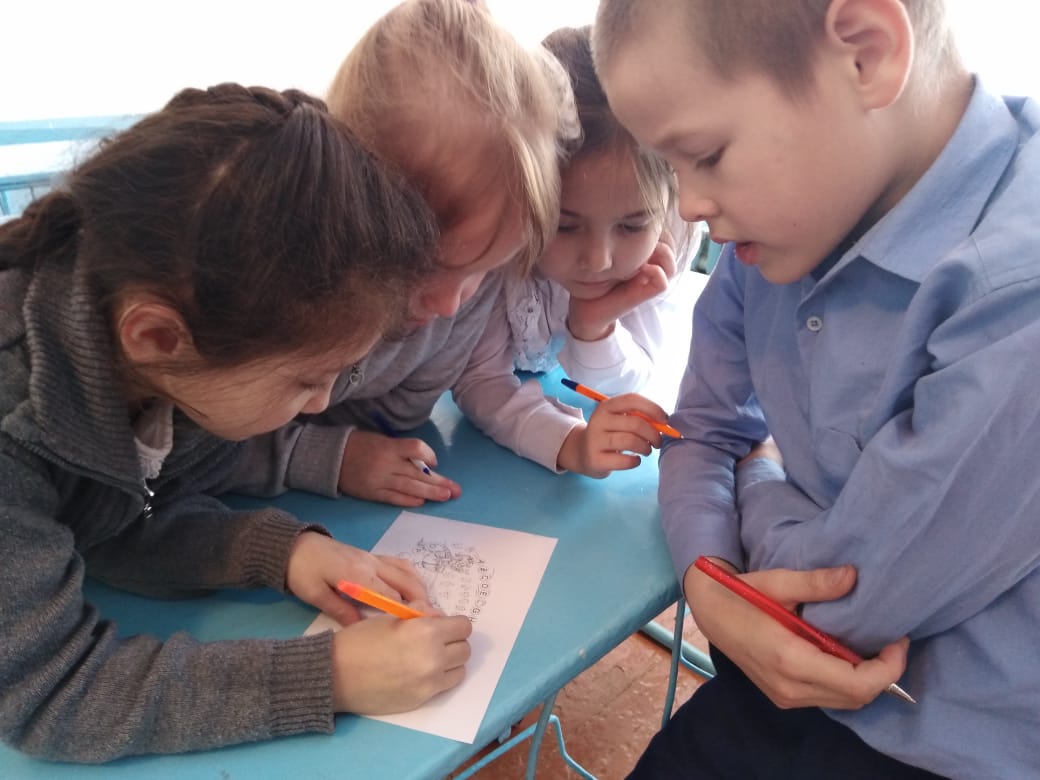 Маленькие знатоки английского языка были разделены на две команды. Учителем Янышевой Ф.Ф. были подготовлены для команд нелегкие задания"Спаси потерянные буквы алфавита", "Расставь буквы в алфавитном порядке", "Угадай слово", "Угадай букву", "Отгадай звук". По итогам конкурса команды набрали одинаковое количество баллов.