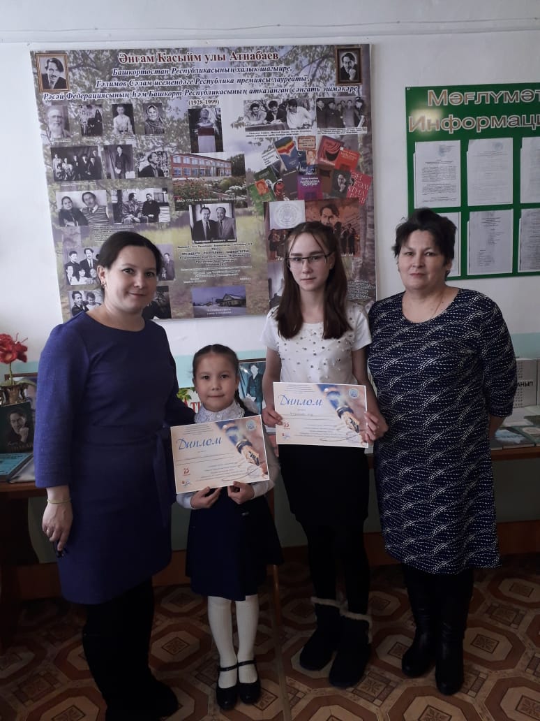 21 февраля 2020 г. ученица 8 класса Гафурьянова А. под руководством учителя башкирского языка Гафурьяновой Р.А. участвовала в открытом районном фестивале – конкурсе поэзии «Күрҙем шишмәләре», посвященного 75-й годовщине Победы в ВОВ 1941-1945 гг. и 85-летию образования Татышлинского района Республики Башкортостан.