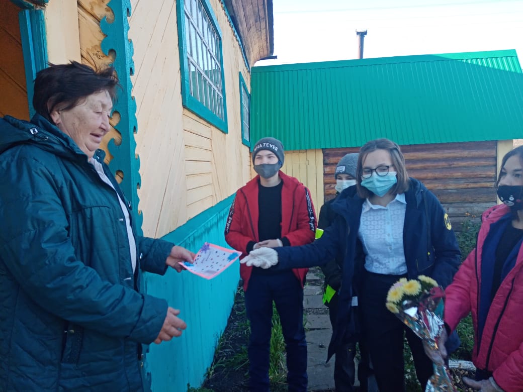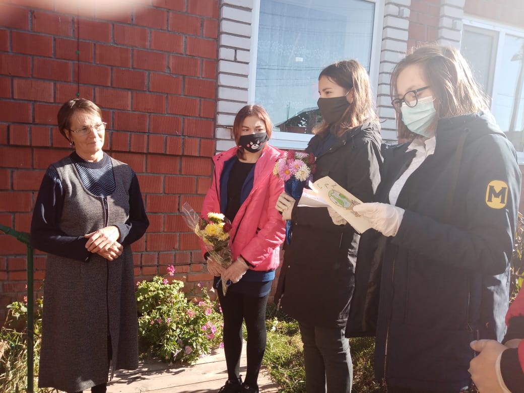 При поздравлении учителей — ветеранов были соблюдены все меры предосторожности в связи с COVID — 19.