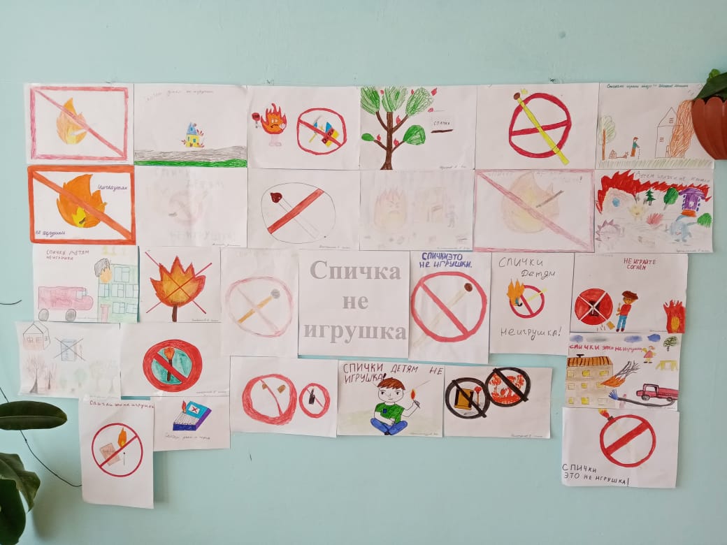 С 13 по 16 октября 2020 г. учителем начальных классов Зидымышевой В.С. была организована выставка рисунков детей на тему «Спички — не игрушка». В коридоре первого этажа школы были выставлены рисунки учащихся начальных классов.