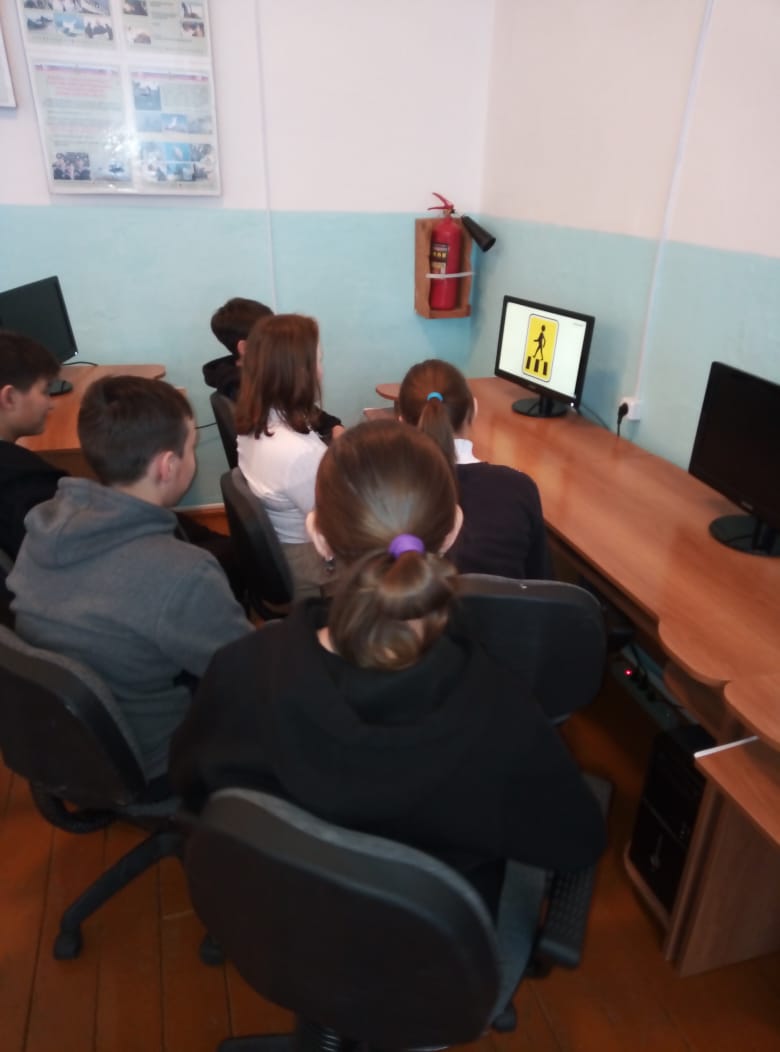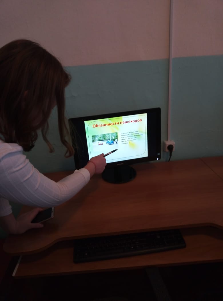 На занятии был проведён видеообзор фильма по ПДД, а после просмотра учащиеся закрепили знания, ответив на вопросы по просмотренному. Также ученица 7 класса Шайхиева Я. подготовила презентацию по теме "Главная дорога".