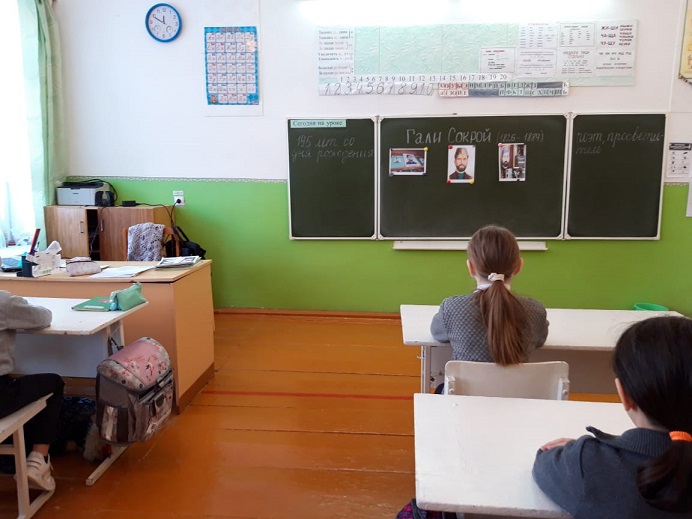 В ходе беседы учащиеся узнал о жизни и творчестве славного земляка, поэта-просветителя XIX века, ученого, религиозного деятеля Мухаметгали Габделсалиховича Киикова (Гали Сокорой)