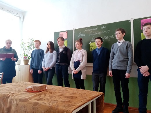 8 февраля 2021 г. в 8 классе с целью сохранения памяти исторических событий героической обороны Ленинграда был проведен урок мужества «Боль блокадного Ленинграда».