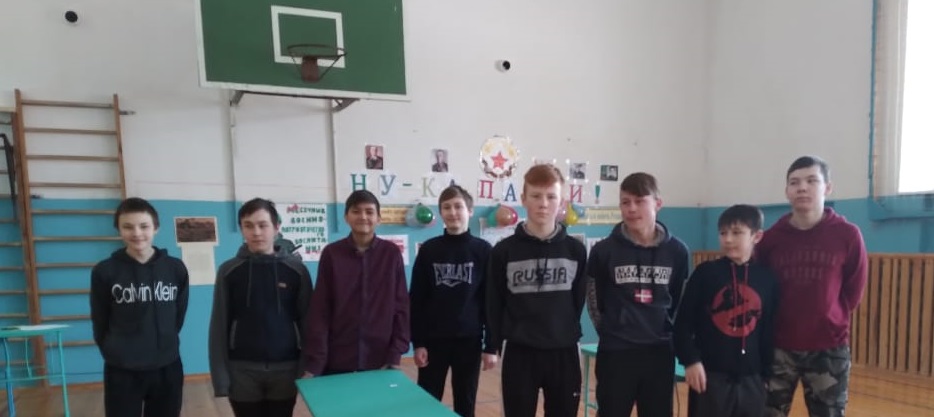 19 февраля 2021 г. ко Дня защитника Отечества в спортивном зале школы прошла военно-спортивная игра «А ну-ка парни!», подготовленная учащимися 10 класса Коноваловой В. и Гараевой А. Её участниками стали команды учеников 7-8 классов. Они соревновались в физической и боевой подготовке, интеллектуальном испытании.