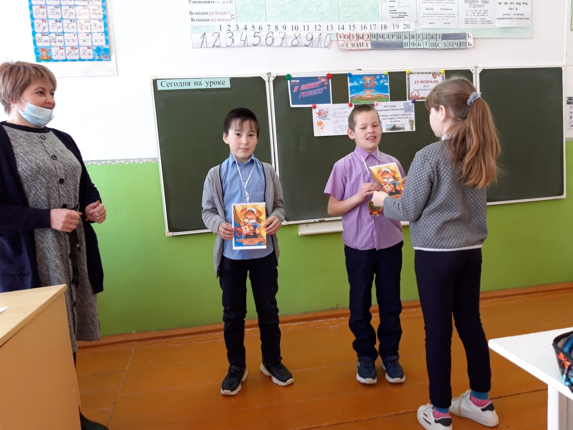 В начале мероприятия ребята узнали, откуда появилась традиция отмечать праздник всех мужчин. Главными героями праздника стали, конечно, мальчики, а их в классе — двое! Ребята приняли участие в конкурсах на ловкость, быстроту, выносливость, внимание. А девочки подготовили для мальчиков сюрприз в виде своих поздравлений и открыток.