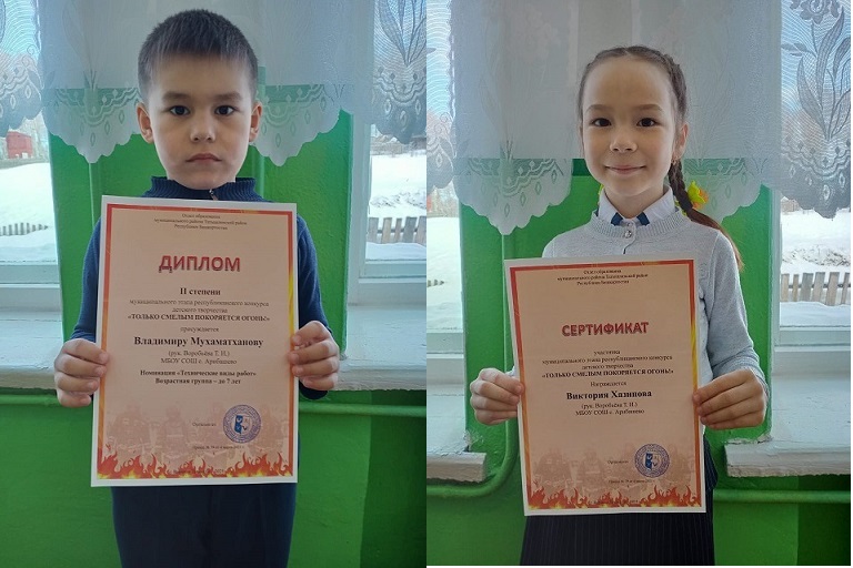 С 29 февраля по 15 марта 2021 г прошел муниципальный этап республиканского конкурса детского творчества «Только смелым покоряется огонь!». Ученик 1 класса Мухаматханов Владимир занял 2 место и был награжден дипломом, а Хазипова Виктория — сертификатом. Руководитель: Воробьева Т.И.