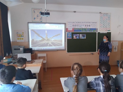 13 апреля 2021 г. библиотекарь Абзалова Н.К. провела с учащимися 3-4 классов мероприятие ко дню Космонавтики "Мы дети Галактики". На мероприятии посмотрели видеоролик и презентацию о первом полете человека в космос.