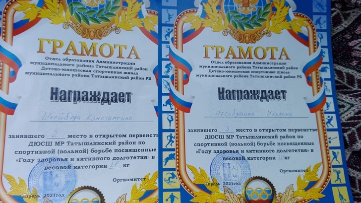13 апреля в с.В.Татышлы прошёл открытый турнир ДЮСШ по вольной борьбе. Он собрал более 40 юных спортсменов 2009-2013 г. рождения из Бураевского и Татышлинского районов. По итогам соревнований в своих весовых категория Шлебер К. занял 2, а Насибуллин И. 3 место (Руководитель: Шарифьянов В.Ф.)