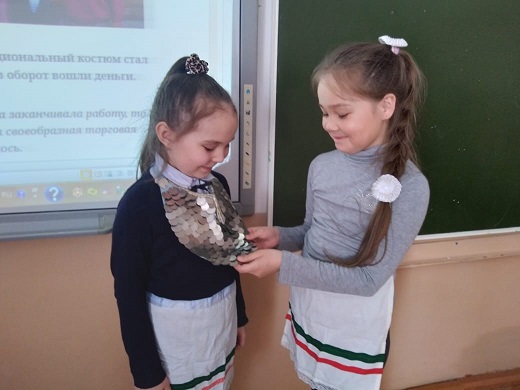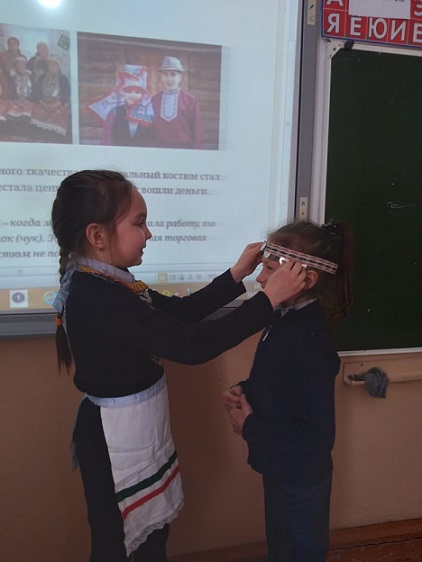 Занятие было проведено в формате урока, посвященного Дню национального костюма народов Республики Башкортостан. Учителем были использованы материалы, опубликованные на портале "Мир родного языка".