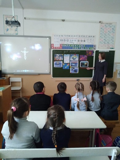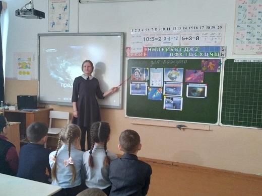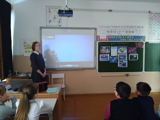 16 апреля 2021 г. в рамках традиционный акции "Добрая суббота" ученица 10 класса Гараева Анастасия провела тематическое занятие на тему "Россия — страна возможностей" для учащихся 1 — 2 классов. Она рассказала учащимся о первом полете человека в открытый космос и провела презентацию профессии космонавта.